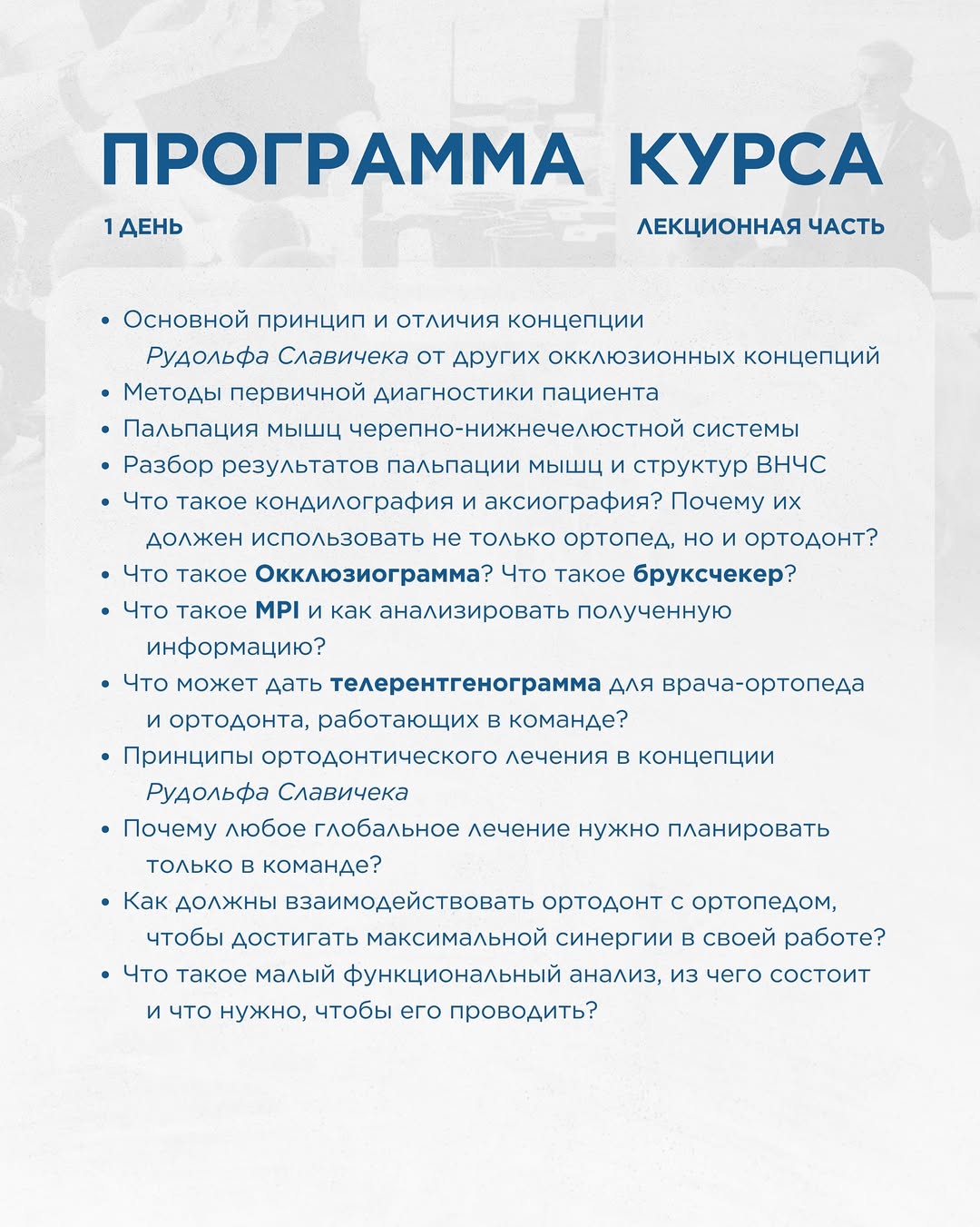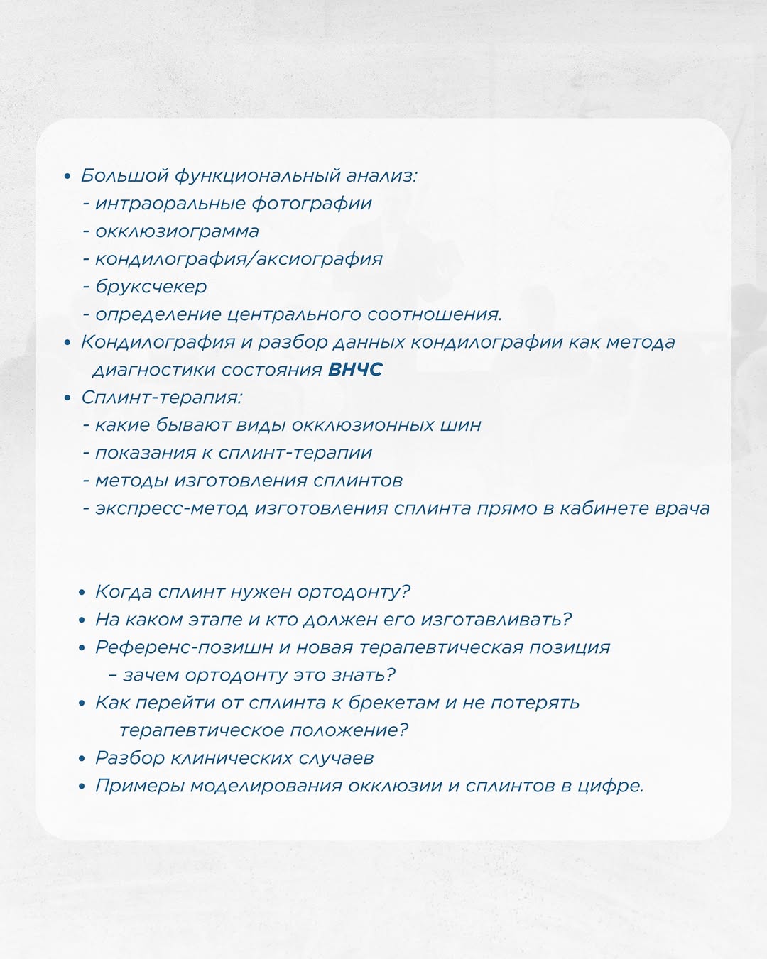 Курс представляет собой интенсивное погружение в мир функциональной стоматологии, основанной на современных цифровых протоколах диагностики и лечения.