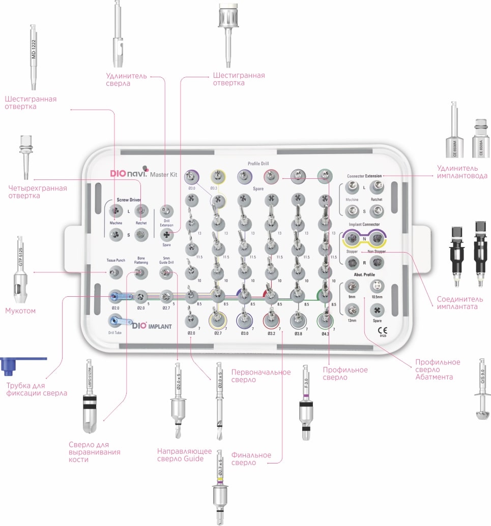 - Направляемая имплантация: Предназначен для использования с хирургическими шаблонами (DIOnavi Guide)