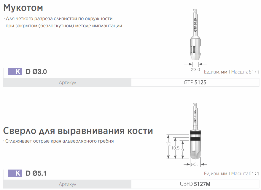 Контроль процесса: подходит для направленной (guided) имплантации с минимальной травматичностью