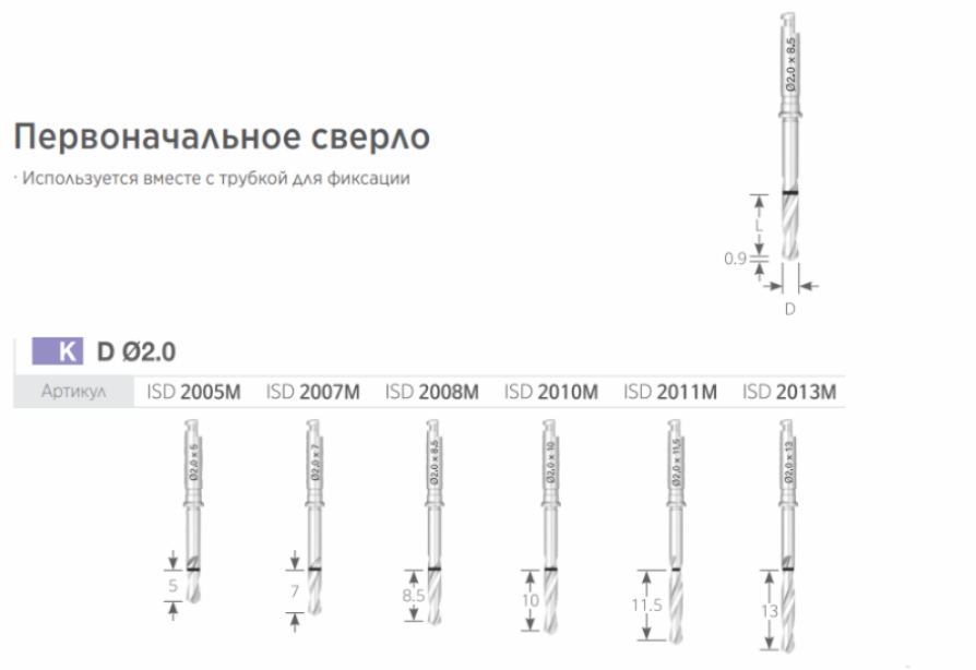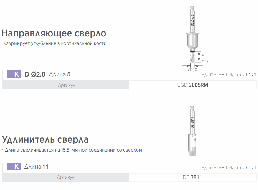 - Полноценный набор: включает все сверла для протокола от Ø 3.0 до 5.0 мм, подходит под разные диаметры имплантов.