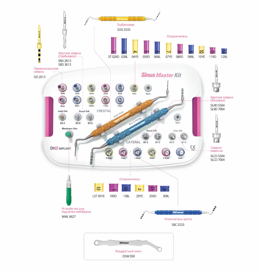 Инновационный набор инструментов для безопасного и эффективного проведения операций синус-лифтинга по открытому и закрытому протоколу.