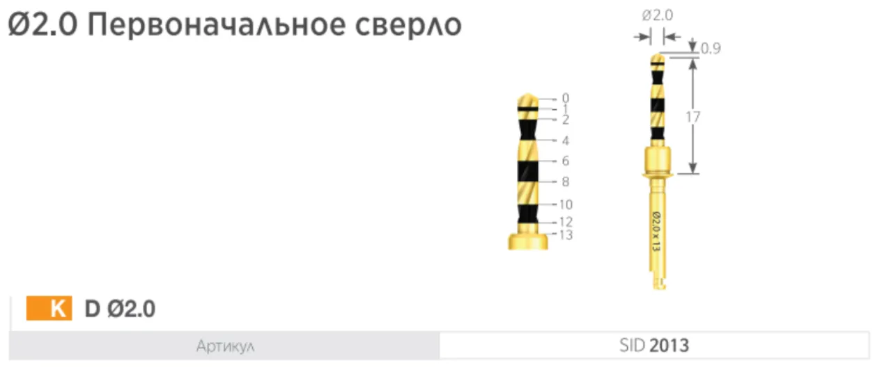 Диаметры сверл: Ø2.0, Ø2.8, Ø3.6