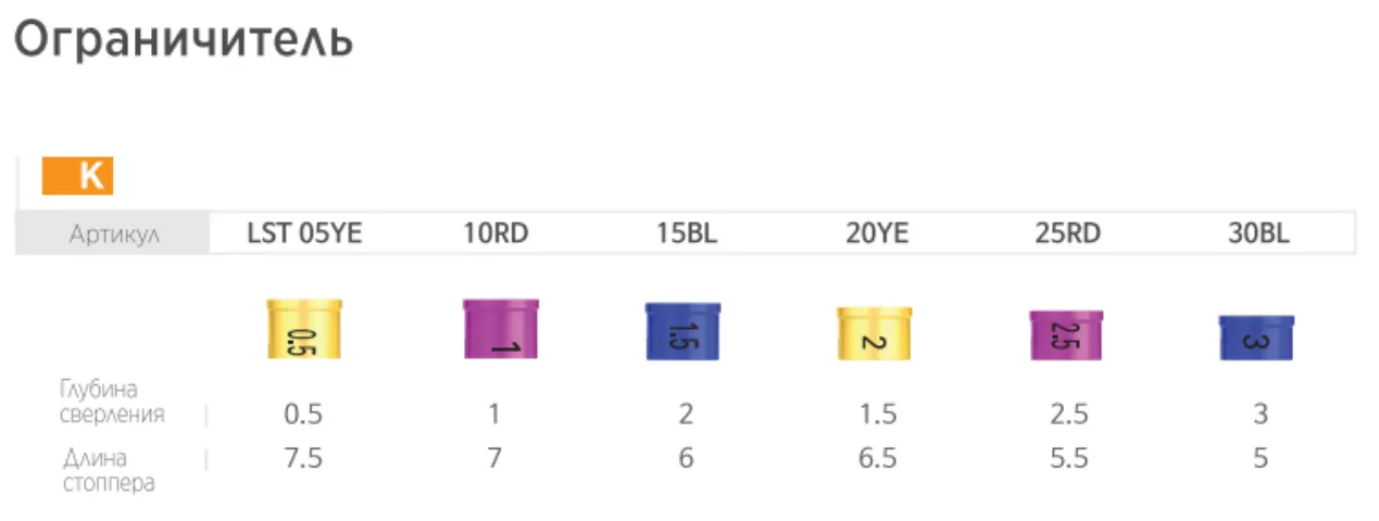 Ограничители глубины – различные размеры и цвета