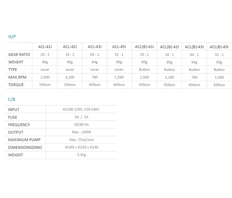 - наконечник: ACL(B)-451I (20:1) или (32:1) кнопочный (базовая комплектация)
