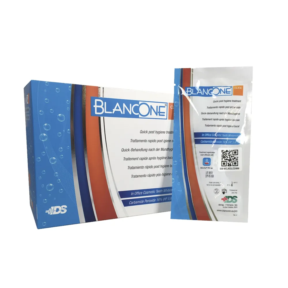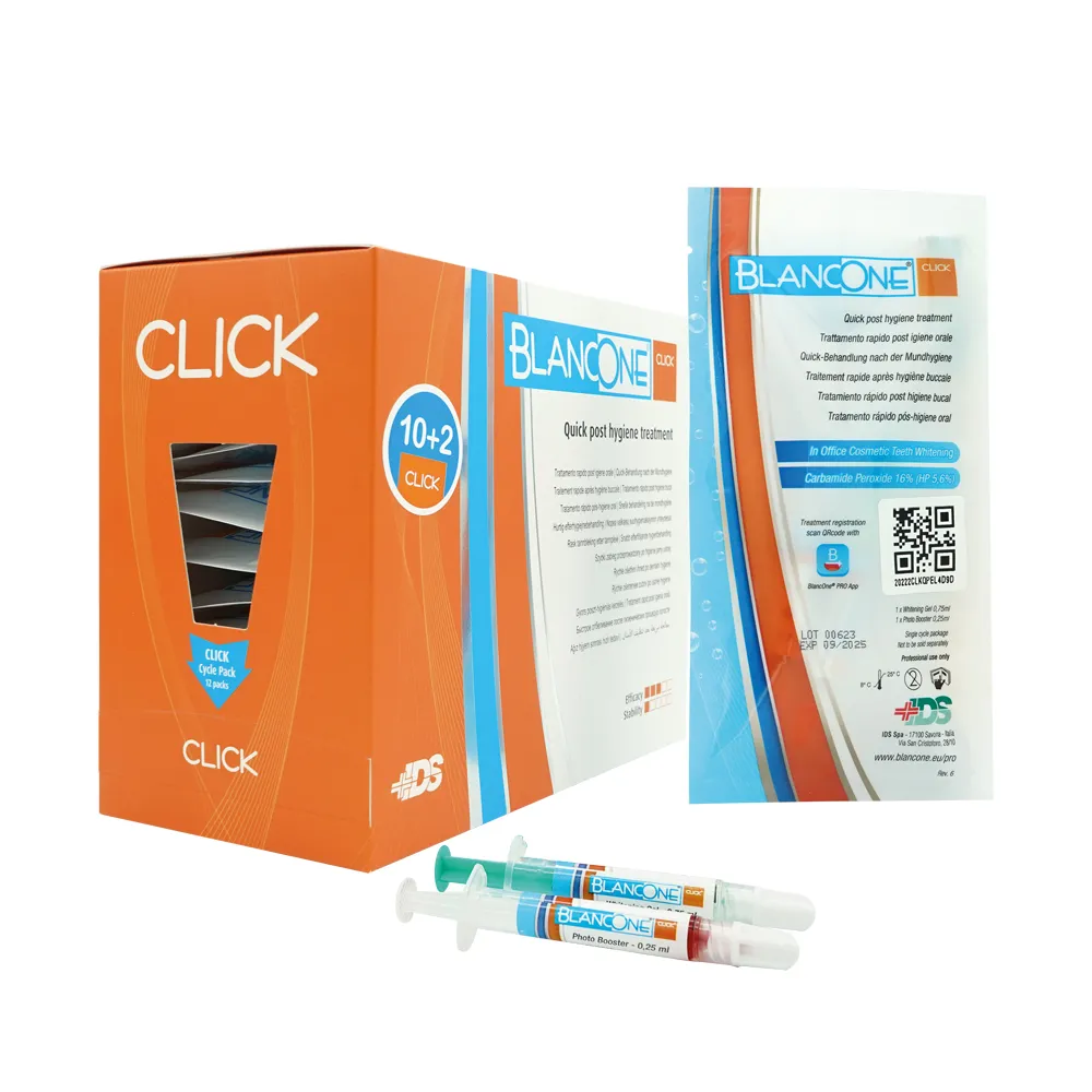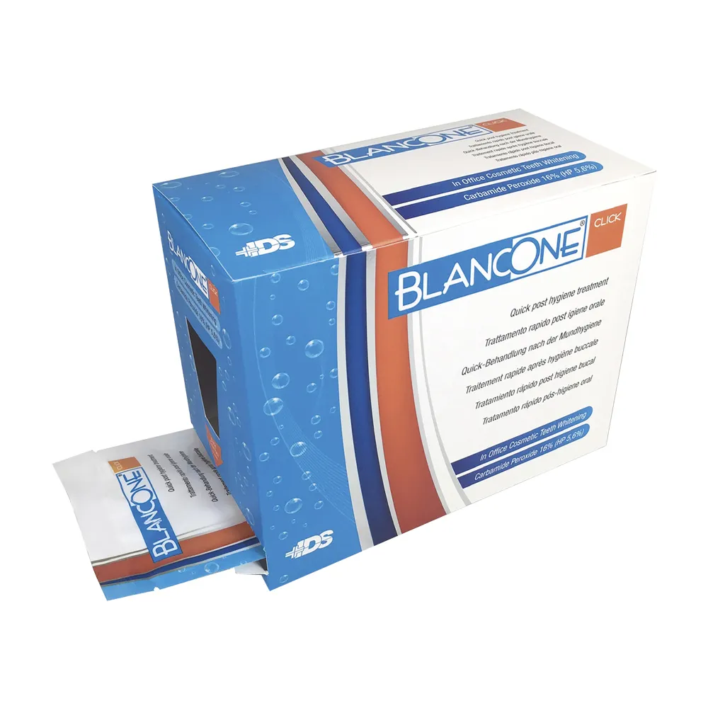 При типичном улучшении на 4-5 оттенков белого, доступная стоимость для пациента и комфортный сеанс, который длится всего несколько минут, BlancOne CLICK — это новая концепция лечения, идеальная точка запуска, разработанная, чтобы позволить каждому попробовать опыт улыбки, которая сразу становится белее и ярче.