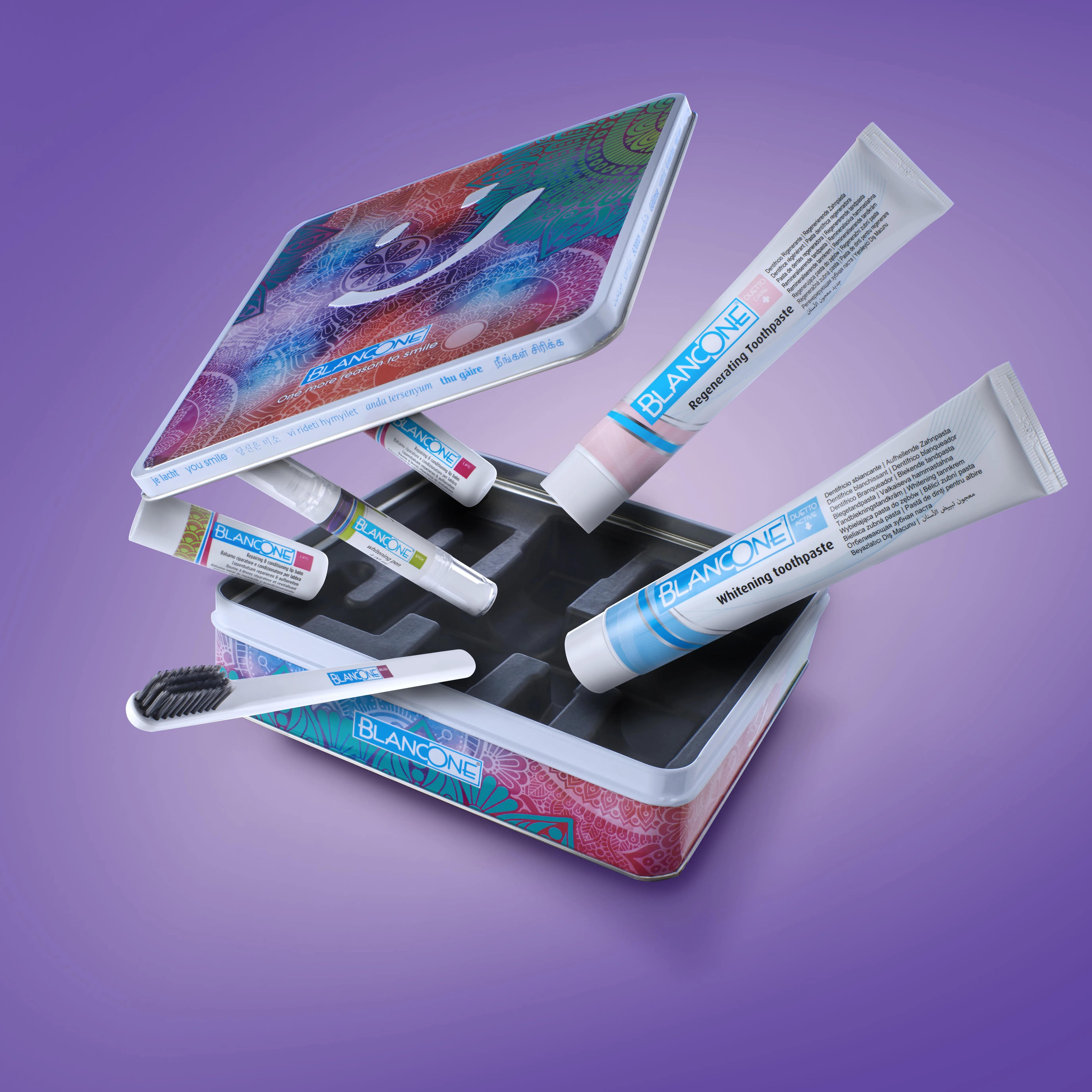 Набор BlancOne RITUALS включен в SMILE BOX , эксклюзивную коробку ограниченного выпуска, доступную в различных вариантах дизайна.