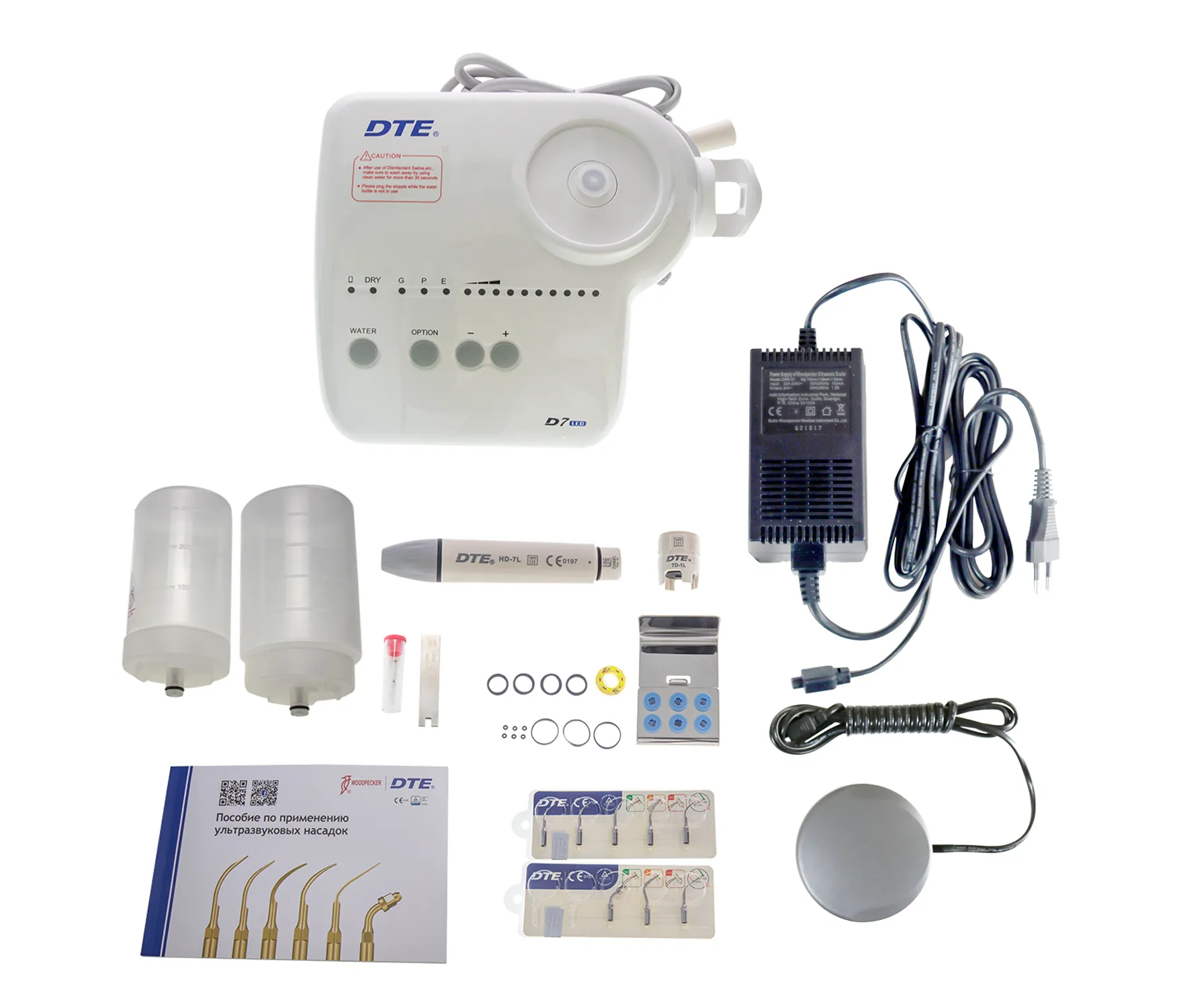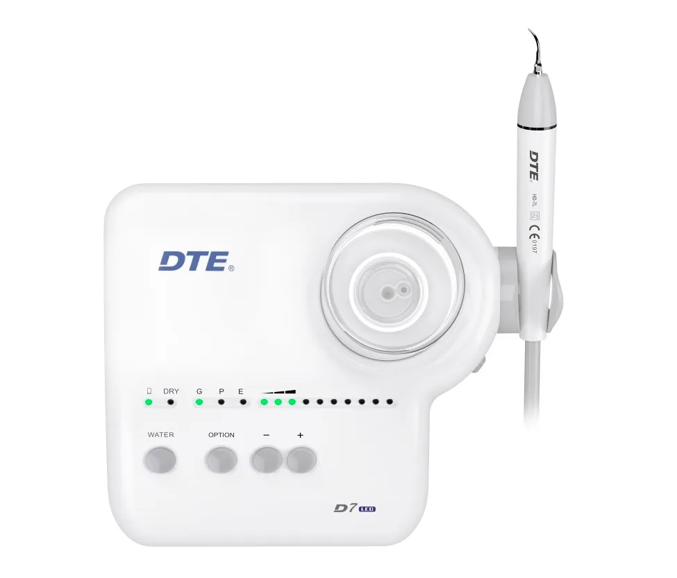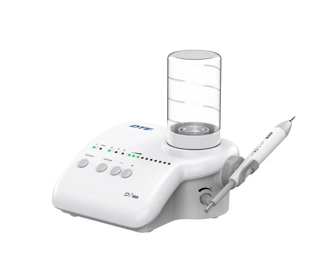 Ультразвуковой скалер DTE D7 LED – стильный и компактный универсальный прибор для пародонтологии, снятия зубных отложений, минимально инвазивных операций и ухода за имплантами. Абсолютно автономный т.к. имеет отдельную емкость для растворов.