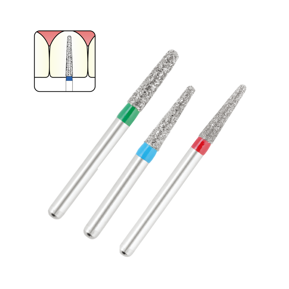 Профессиональные стоматологические боры для точного препарирования твердых тканей зуба, реставрационных материалов и формирования анатомических контуров. Конусовидная форма с куполообразным (выпуклым) концом обеспечивает плавный заход в материал и безопасную работу в анатомически сложных участках.